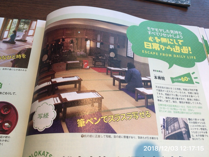 おひとりさま専用walker にて 本寿院の写経が紹介されました。