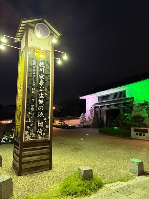 富士霊園での法要後、次は名古屋です。車で名古屋方面に向かい、疲れたら休む。今日は、岡崎の地で宿をとる事にしました。翌朝が早いので、恒例の散策が出来ない事から、夜に岡崎城へ