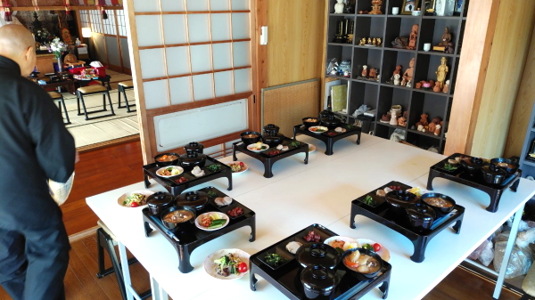 お寺の作務からはじまり、法衣に着替えて座禅やお写経を行っていただきました。