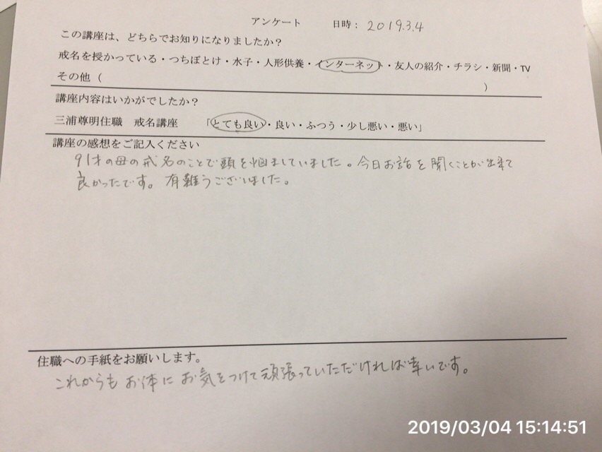 戒名講座には、様々な質問が寄せられます。