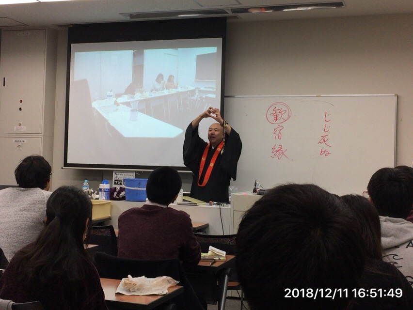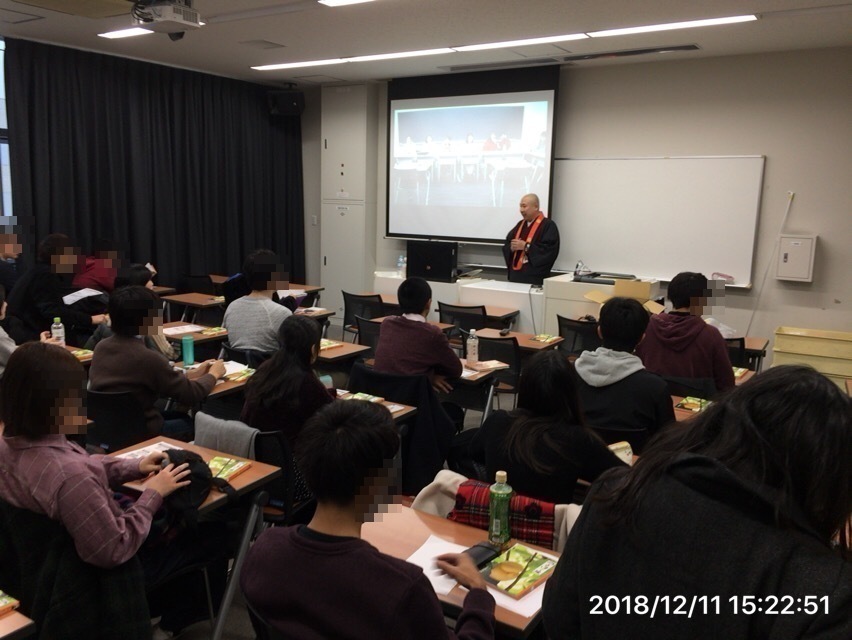 平成30年12月11日 昨年に引き続き、明治大学 和泉キャンパスにて「日本の仏教文化と仏教精神について」