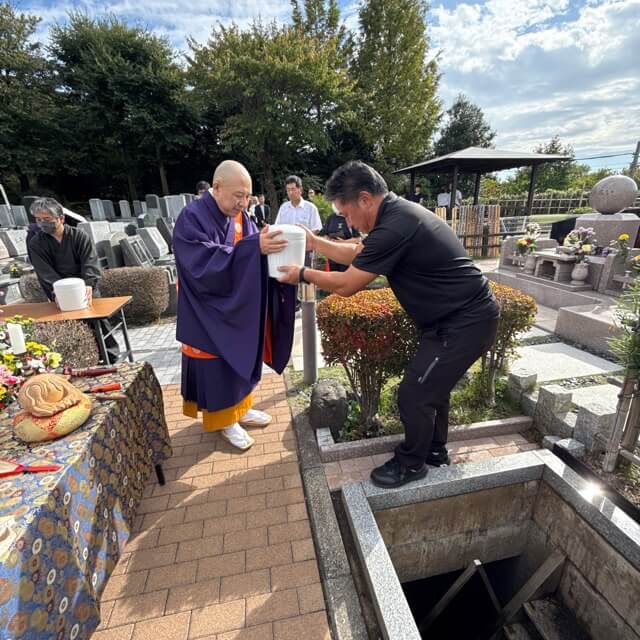 まずは、納骨法要です。事情があっておひとり様等の場合は、遺族がおられません。その場合は、私が変わって納骨させていただいており、年に二回は供養法要を厳修させていただいております。