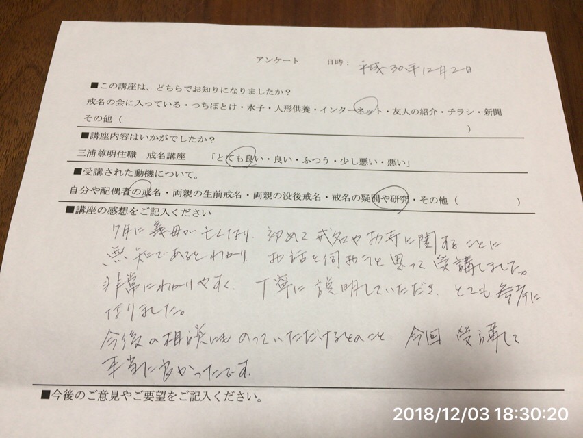 平成30年12月3日 池袋西武百貨店 コミュニティカレッジにて戒名講座とつちぼとけ教室を行いました。