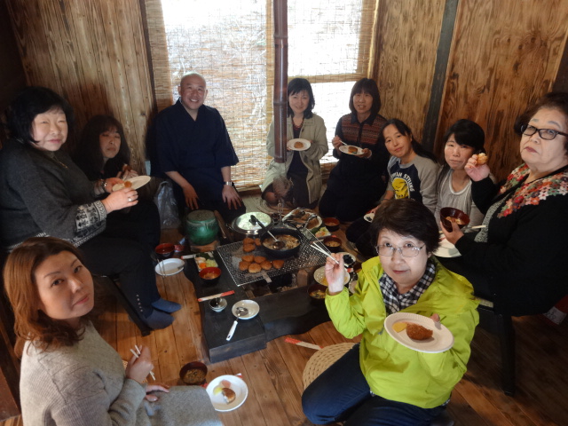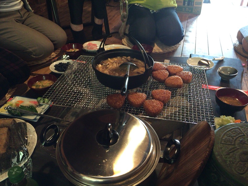 まずは、昼食 囲炉裏で焼いた焼きおにぎりとみそ汁。絶品です。