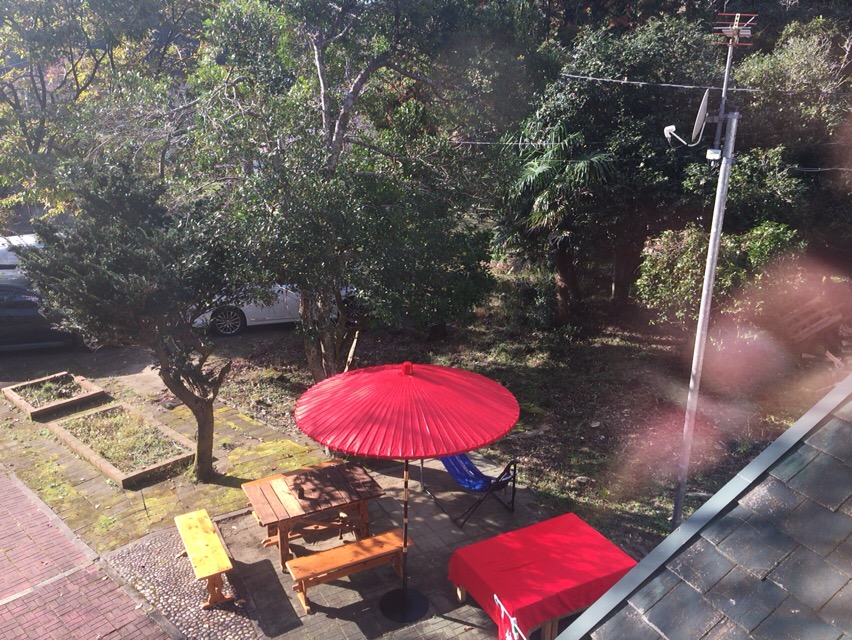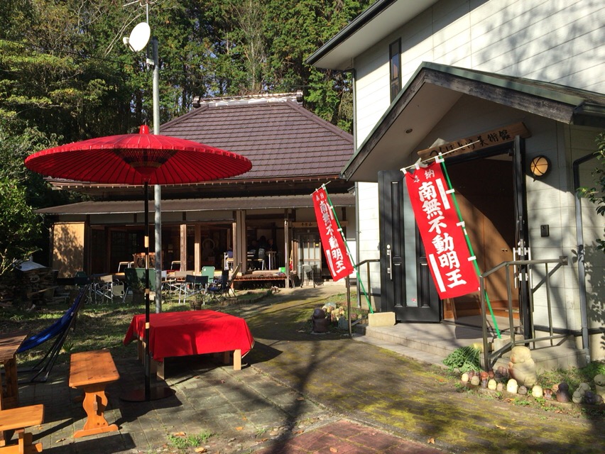 秋晴れのあたたかい日になりました。お不動さんののぼりを見た外国の方が食堂と間違えて「何か食べるものを下さい」と入ってこられました。
