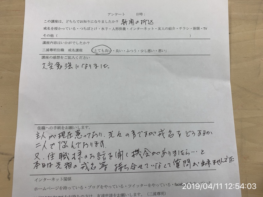 戒名講座です