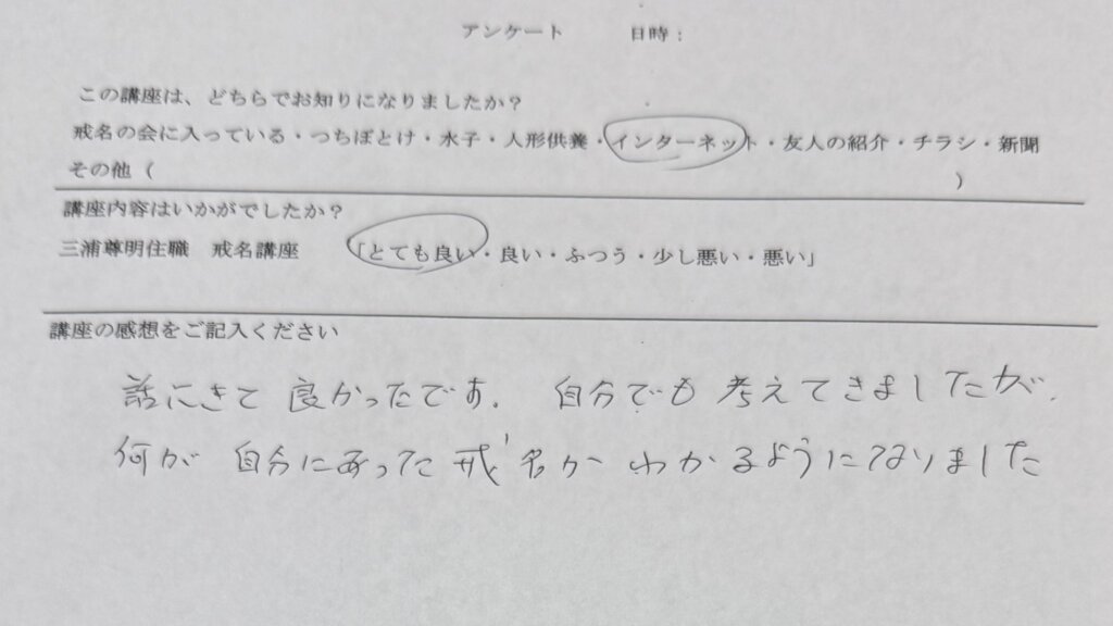 また、父親の戒名に悩み、今度やってくる母親の時はどうすれば良いか?と悩んで参加された方