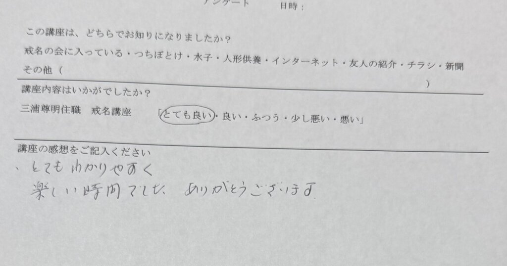 また、父親の戒名に悩み、今度やってくる母親の時はどうすれば良いか?と悩んで参加された方