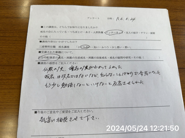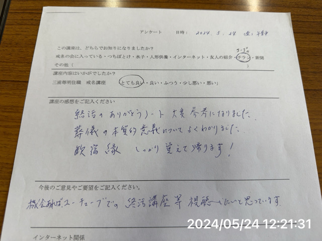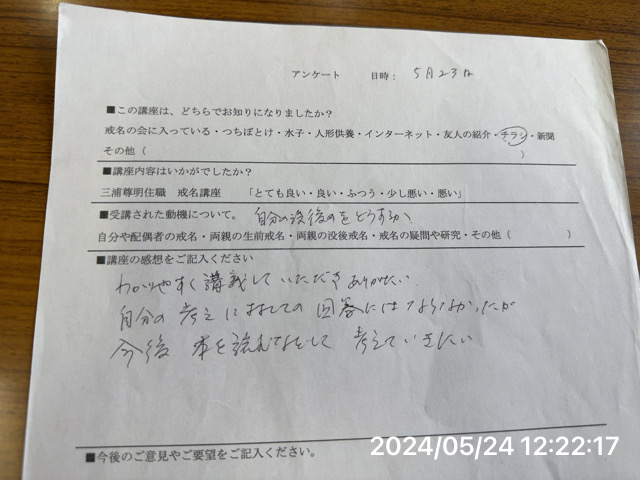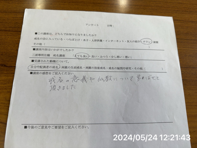 - 戒名講座の感想