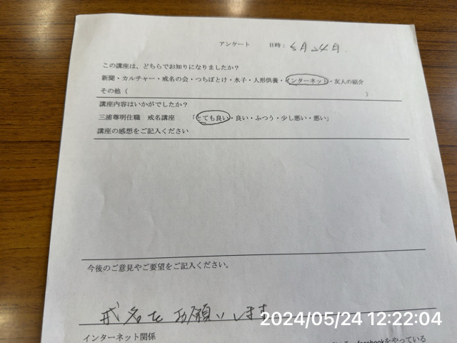 戒名講座のアンケートは、大津本寿院のホームページにてご覧ください。