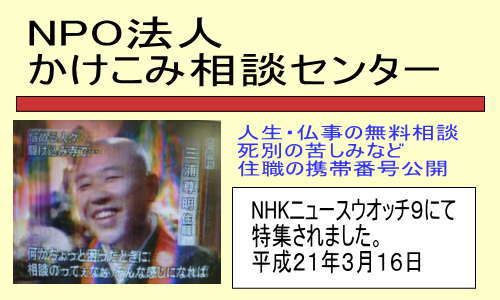 本寿院は、NHKでも紹介された「現代のかけこみ寺」です。三浦住職の活動は、宗派を超えてNPO法人として認定(NPO法人かけこみ相談センター)され、人生仏事の無料相談を承っております。相談を受ける中で、戒名に悩む方が非常に多くおられることに気づきます。