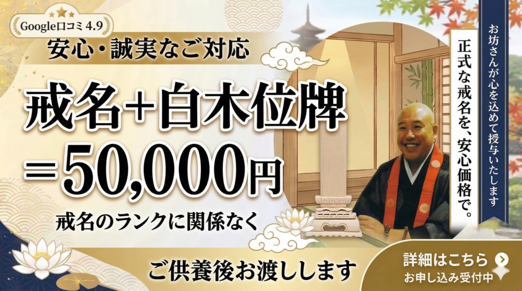 白木位牌がない方 戒名3万円+白木位牌2万円=5万円