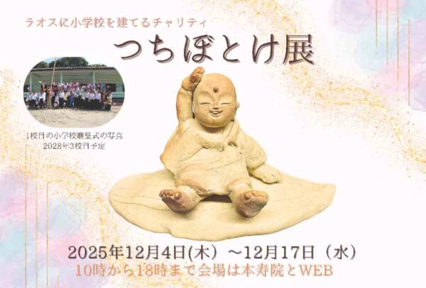 また、住職はじめ生徒さんが作ったつちぼとけをチャリティ販売し、ラオスに小学校を建設しております。