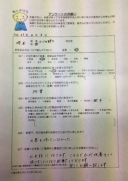 故人の御骨を大切にする姿勢にとても有難く感じております。